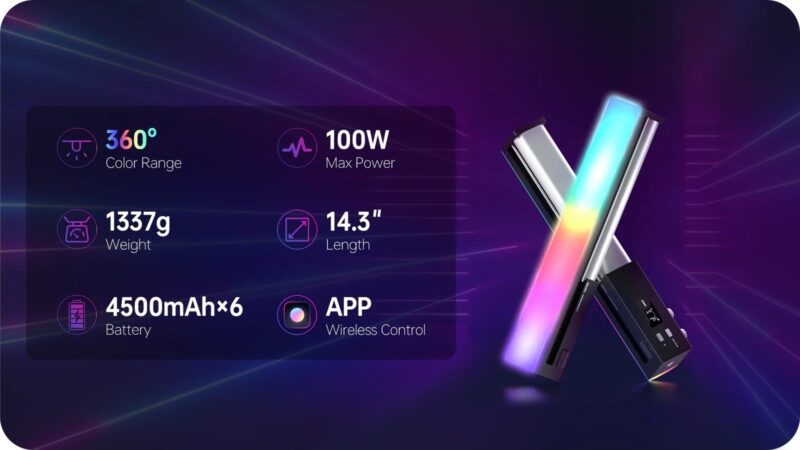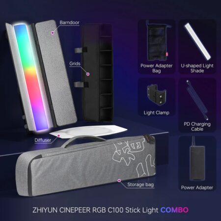 ZHIYUN CINEPEER C100 COMBO je prenosivo štapno led svetlo velike snage 100W RGBWW dizajnirano za profesionalno snimanje videa i fotografiju.